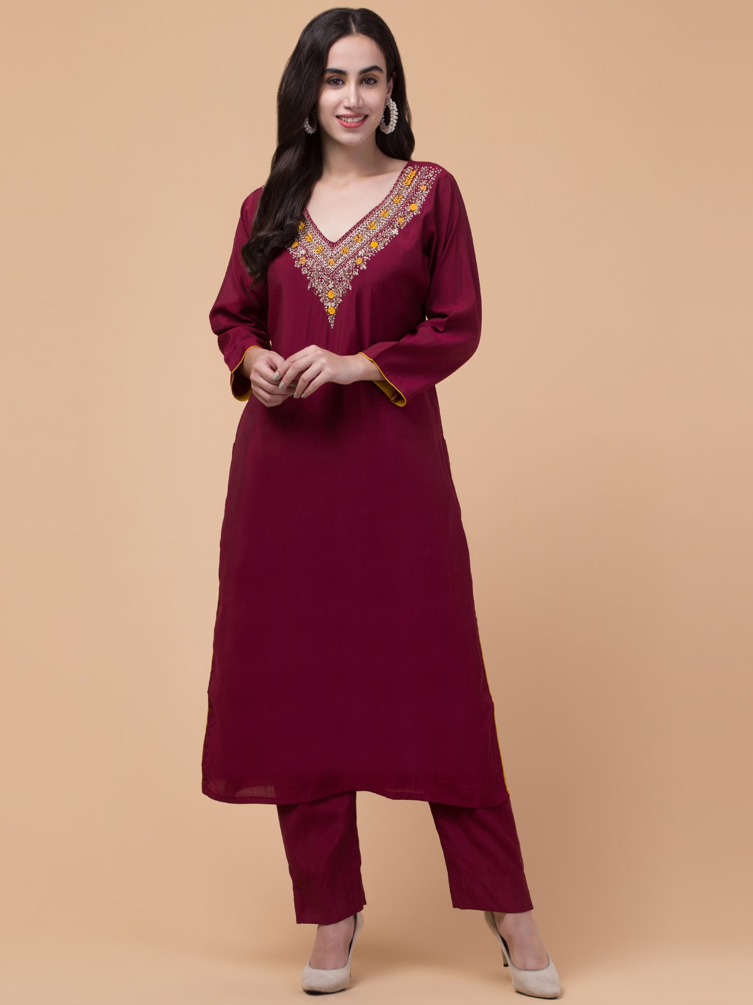 Malana Merino Women's Salwar Suits Set V Neck Maroon (With Dupatta)