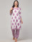 Malana Merino Girl / Women's Cotton Floral Print White and Violet V - Neck 3 Pc Kurta Set