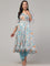 Malana Merino Girl / Women's Organza Blue and White 3 Pc Round Neck Kurta Set